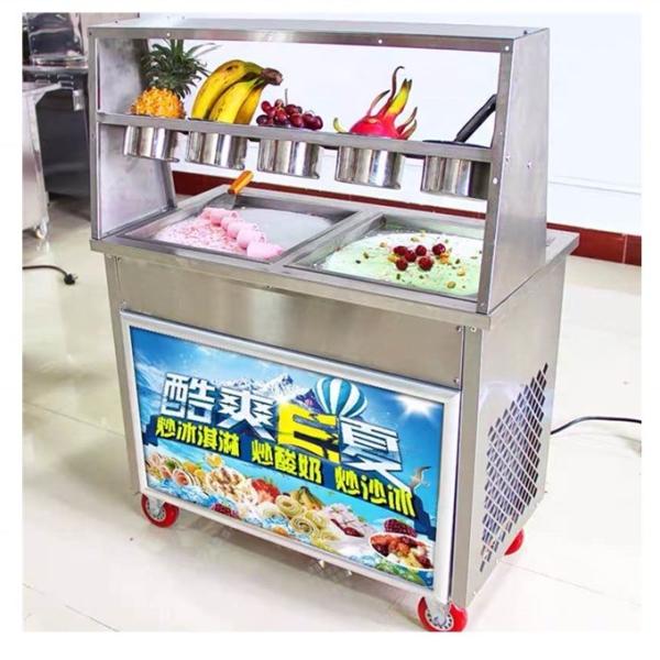 The Flat Pan Fried Ice Cream Machine has single or double pan. It can use pure water, plus a prepared formula and fruit drinks, you can create a variety of types of soft and hard ice cream, smoothies, Ice, ice mud, slush, snow ice, fruit ice, ice porridge, fruit, etc. The production out of fried ice cream and diverse range of food colors, rich in nutrition, taste great, refreshing cool down.It's used for making fried soft ice cream roll,also suitable for yogurt,fruit juice,smoothies,ice mud,ce porridge.Flavors can be customized with adding different taste fruits.